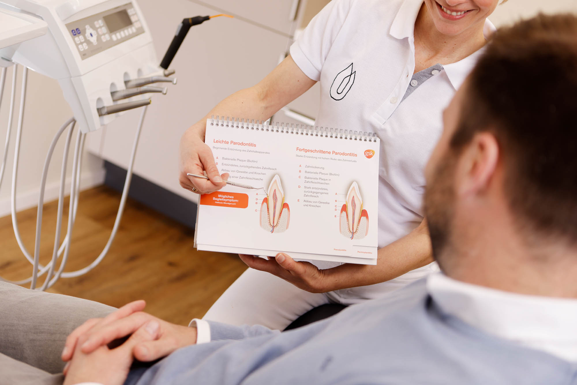 Wir bieten Ihnen eine ausführliche Beratung und strukturierte Parodontitisbehandlung und legen gemeinsam mit Ihnen einen individuellen Therapie- und Nachsorgeplan fest.